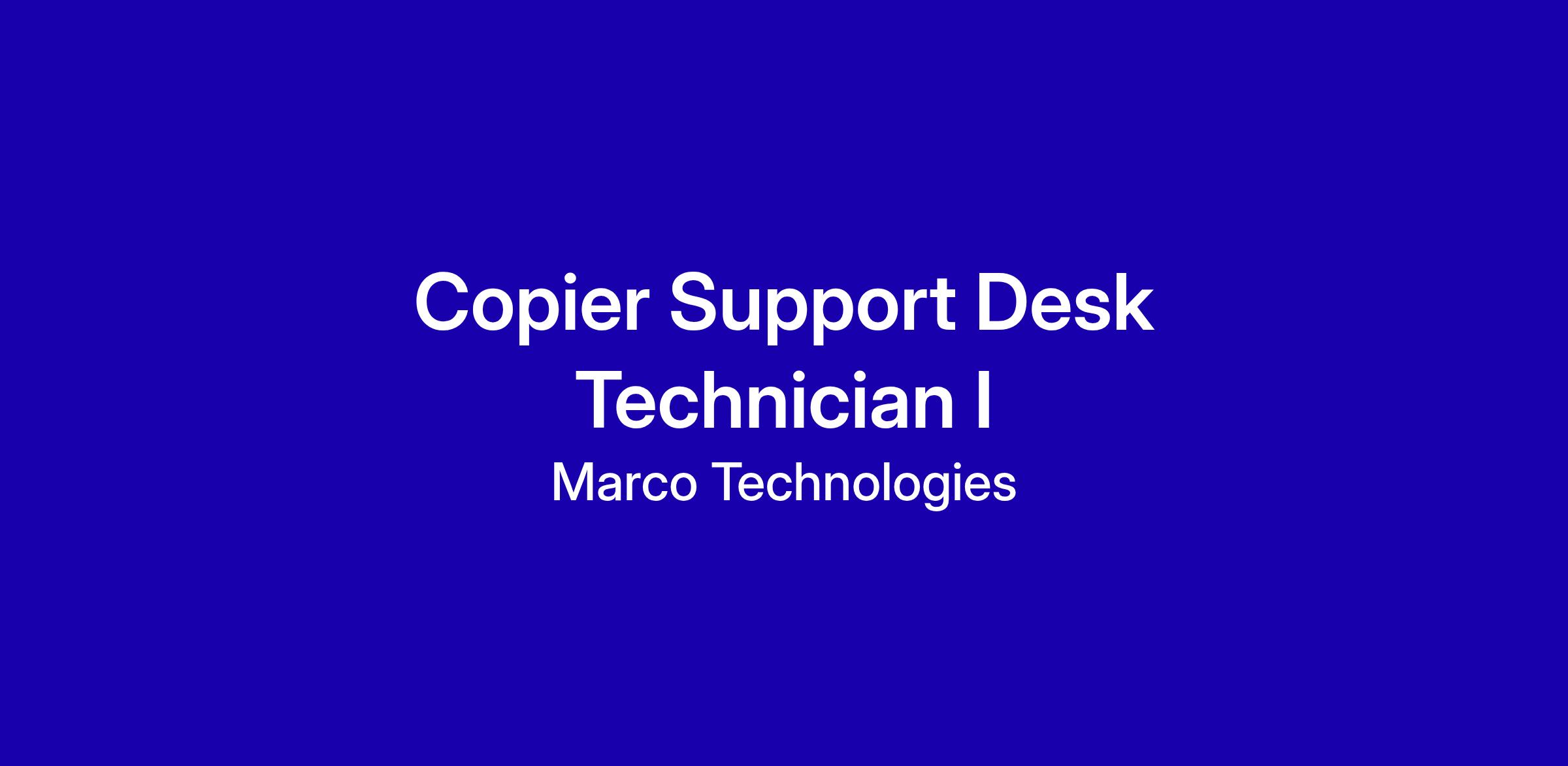 The Copier Support Desk Technician I is responsible for providing quality services and solutions to our clients while maintaining a high level of client satisfaction. You will provide first level remote technical support for copiers, printers, multifunction devices, and related software and solutions, using technical skills to troubleshoot and resolve service issues while ensuring a high level of customer satisfaction.