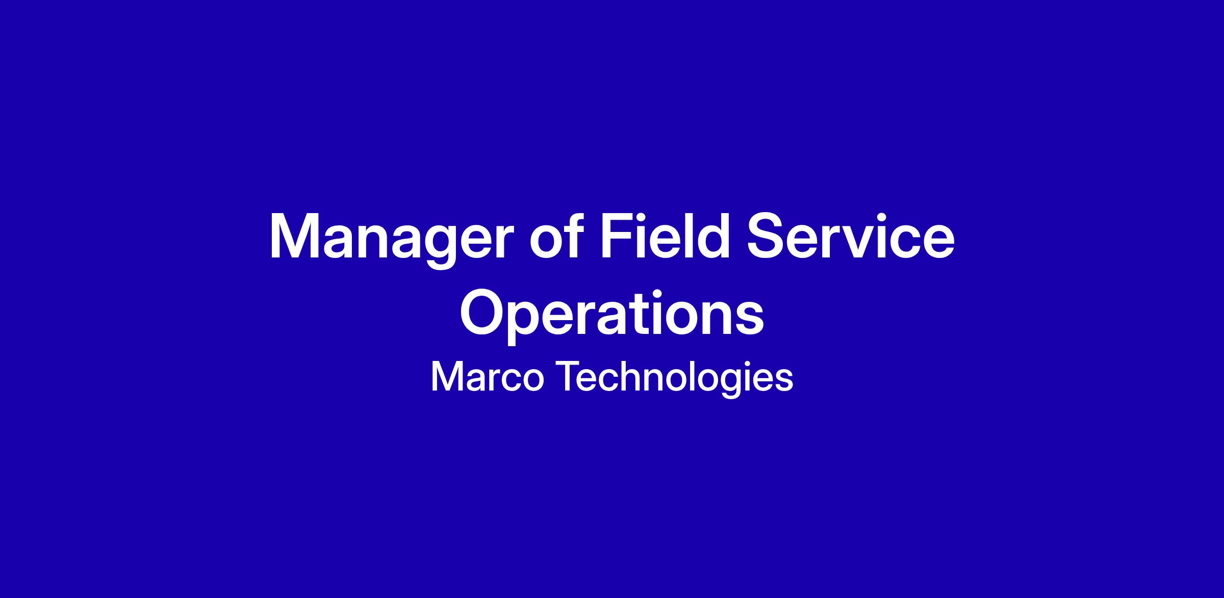 The Manager of Field Service Operations is responsible for leading, managing and supporting a team of Copier Service, Install and Shred Technicians (if applicable) responsible for timely, high quality and cost-effective product service to our clients. The Manager of Field Service Operations must ensure a high level of external client satisfaction and achievement of Service, Install and Shred goals and objectives.